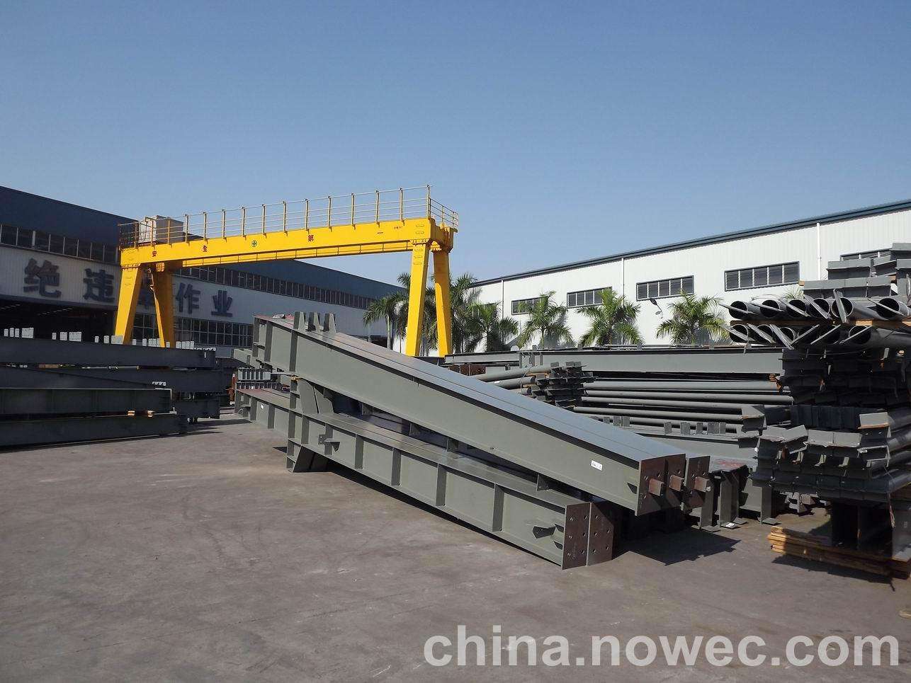 条状单元一般沿长跨方向分割,其宽度约为1~3个网格,其长度为l2或l2/2(l2为短跨跨距)。块状单元一般沿驻马店网架平面纵横向分割成矩形或正方形单元。每个单元的重量以现有起重机能胜任为准。条(块)与条(块)之间可以直接拼装,也可空一网格在高空拼装。由于条(块)状单元是在地面拼装,因而高空作业量较高空散装法大为减少,拼装支架也减少很多,又能充分利用现有起重设备,故较经济。这种安装方法适用于分割后网架的钢度和受力状况改变较小的各类中小型网架,如两向正交正放四角锥、正放抽空四角锥等网架。